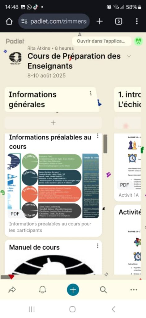 Session de formation à l’attention de ses membres sur l’enseignement des échecs éducatifs