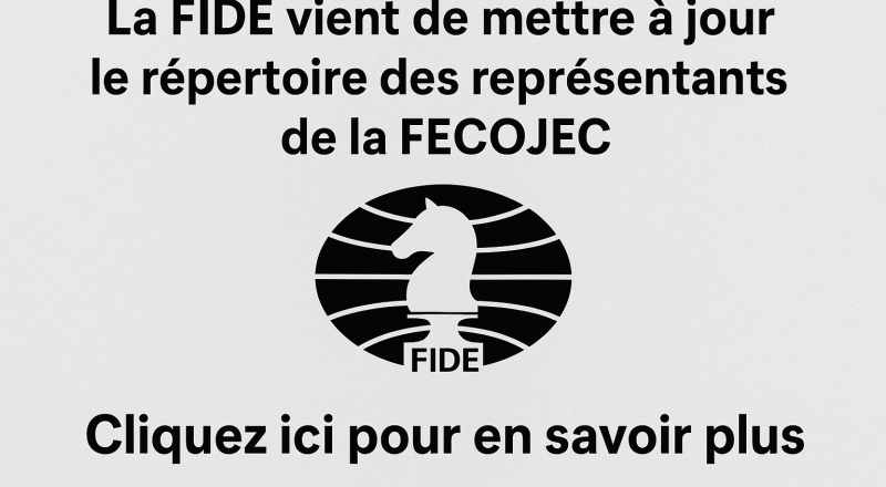 La FIDE a procédé à la mise à jour du répertoire officiel des représentants de la FECOJEC.Nous vous invitons à consulter cette nouvelle version en […]